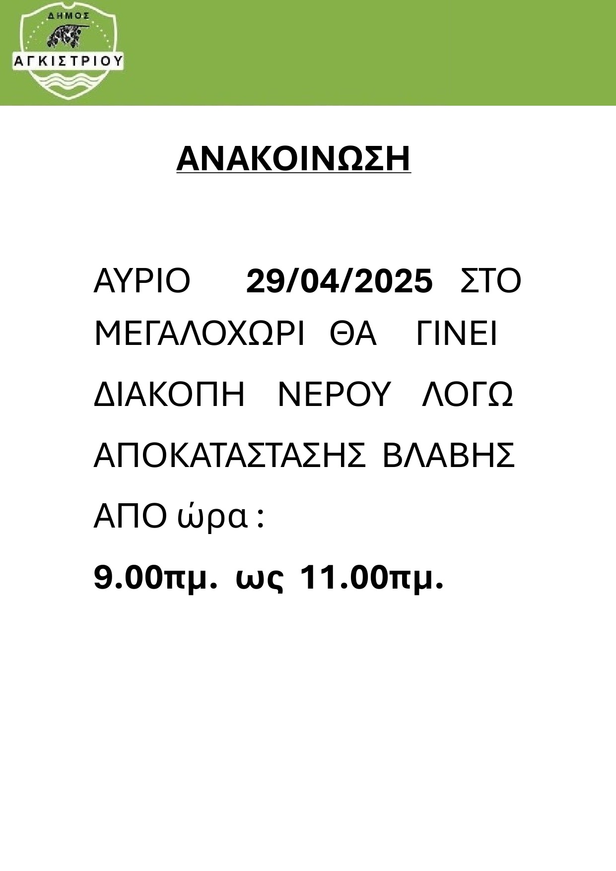 ΔΡΑΣΕΙΣ ΤΟΥ ΔΗΜΟΥ ΑΓΚΙΣΤΡΙΟΥ