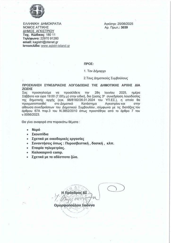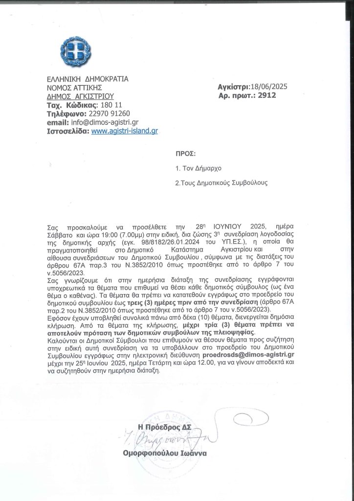 Πρόσκληση στην 3η Ειδική Συνεδρίαση Λογοδοσίας 26 Ιουνίου 2025 ΔΕΛΤΙΑ ΤΥΠΟΥ Ακολουθούν τα θέματα της Συνεδρίασης: