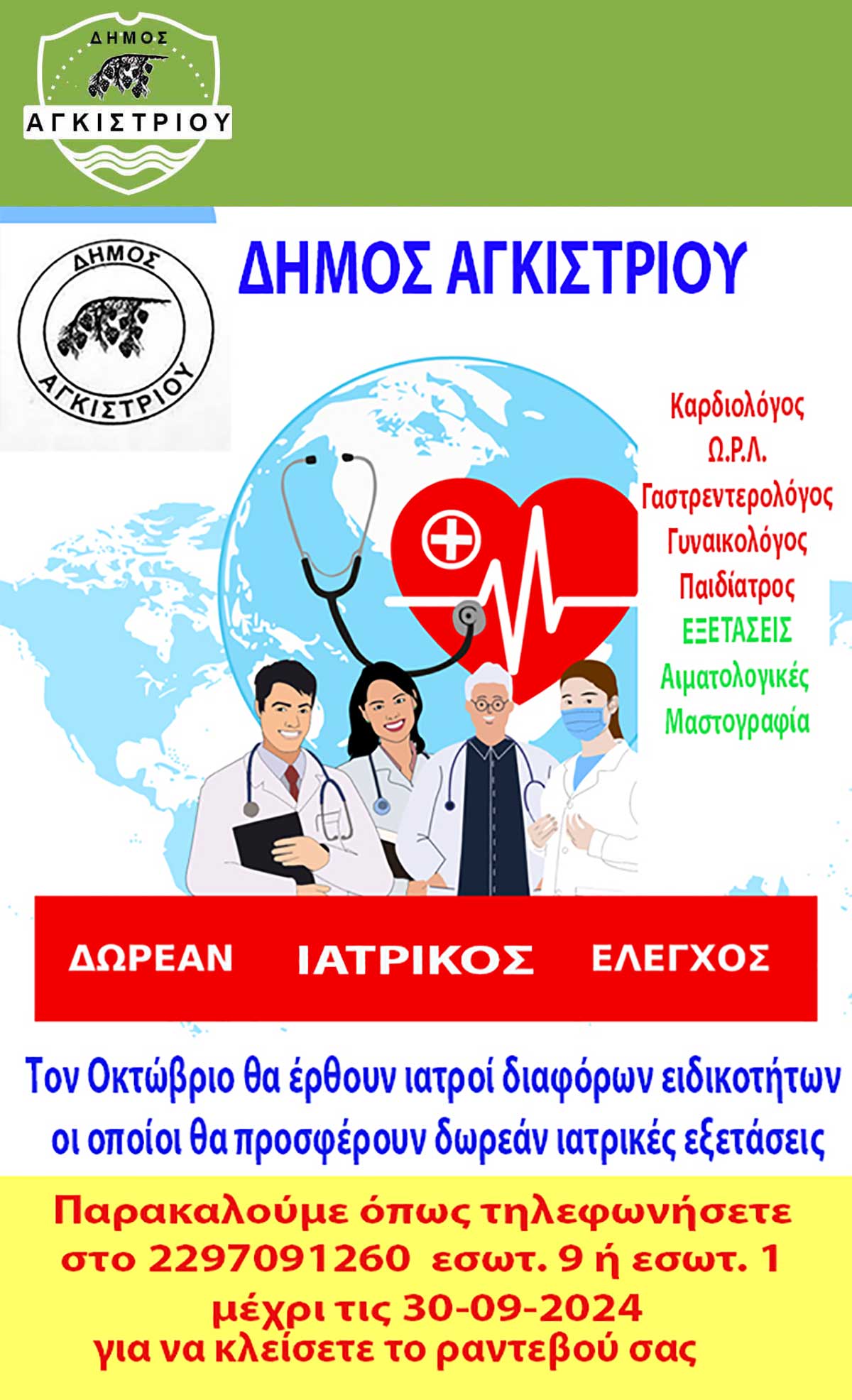 Στον Δήμο Αγκιστρίου, δωρεάν ιατρικός έλεγχος τον μήνα Οκτώβριο