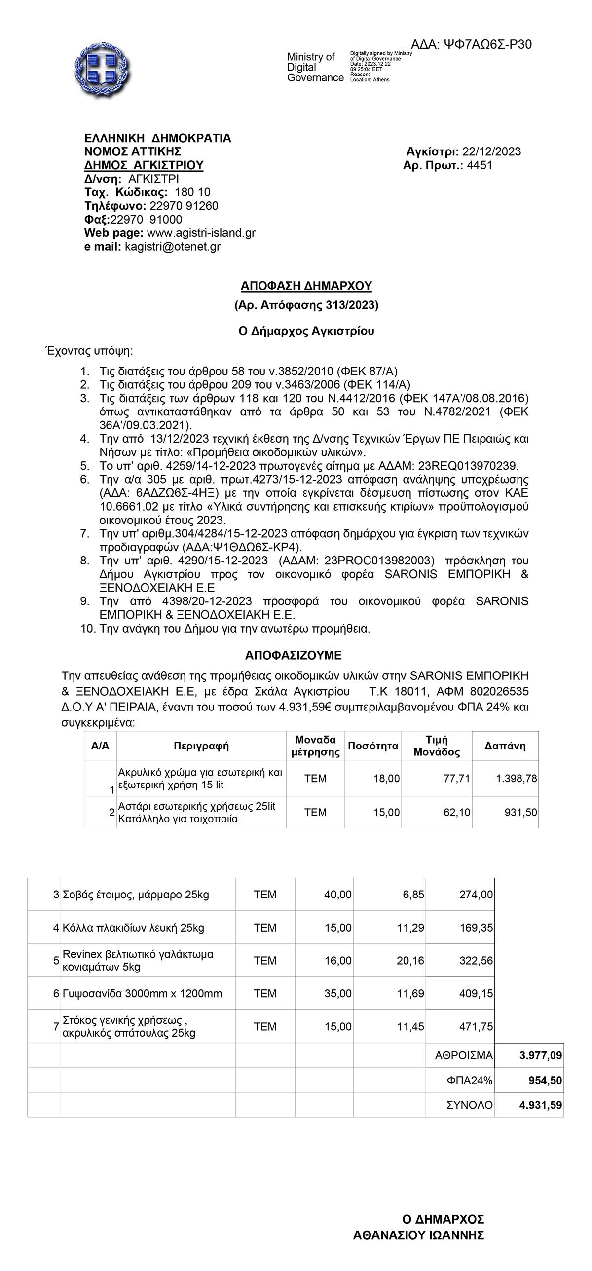 ΑΠΟΦΑΣΕΙΣ ΔΗΜΑΡΧΟΥ