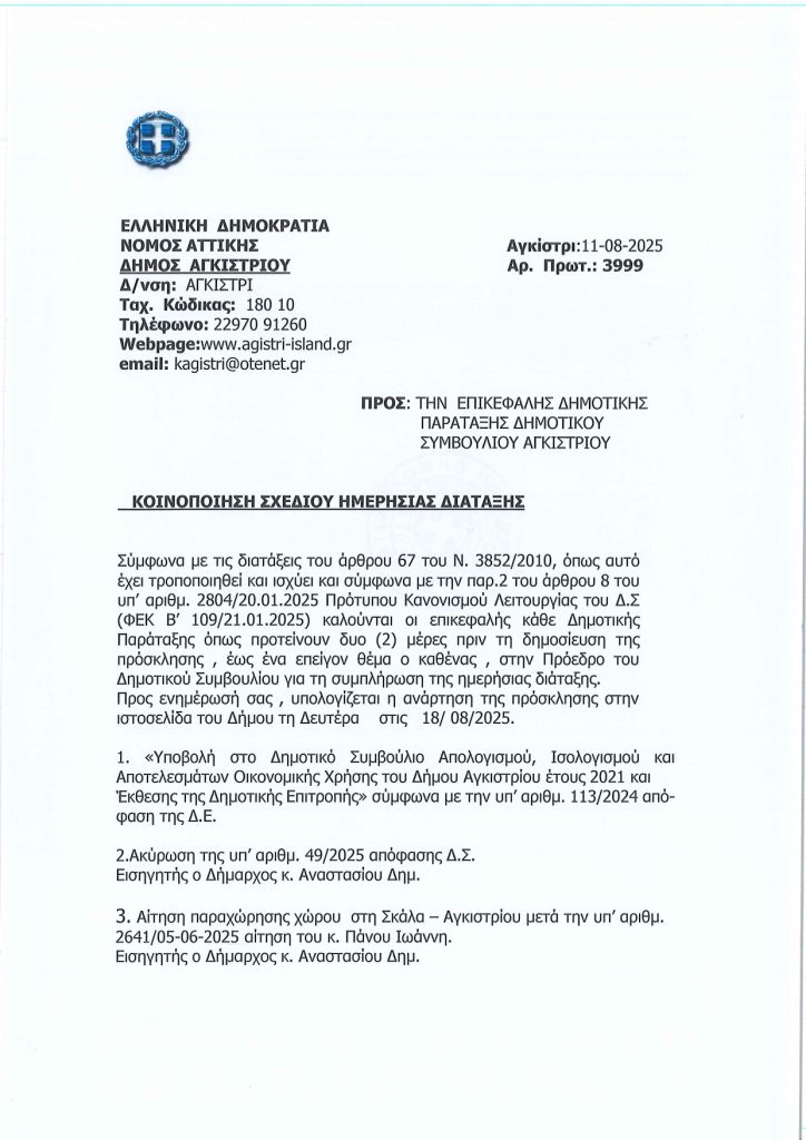 Κοινοποίηση Σχεδίου Ημερήσιας Διάταξης