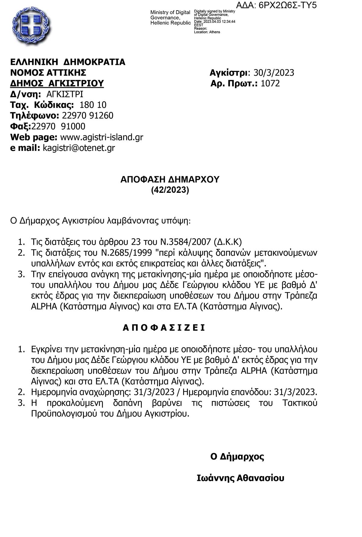 ΑΠΟΦΑΣΕΙΣ ΔΗΜΑΡΧΟΥ