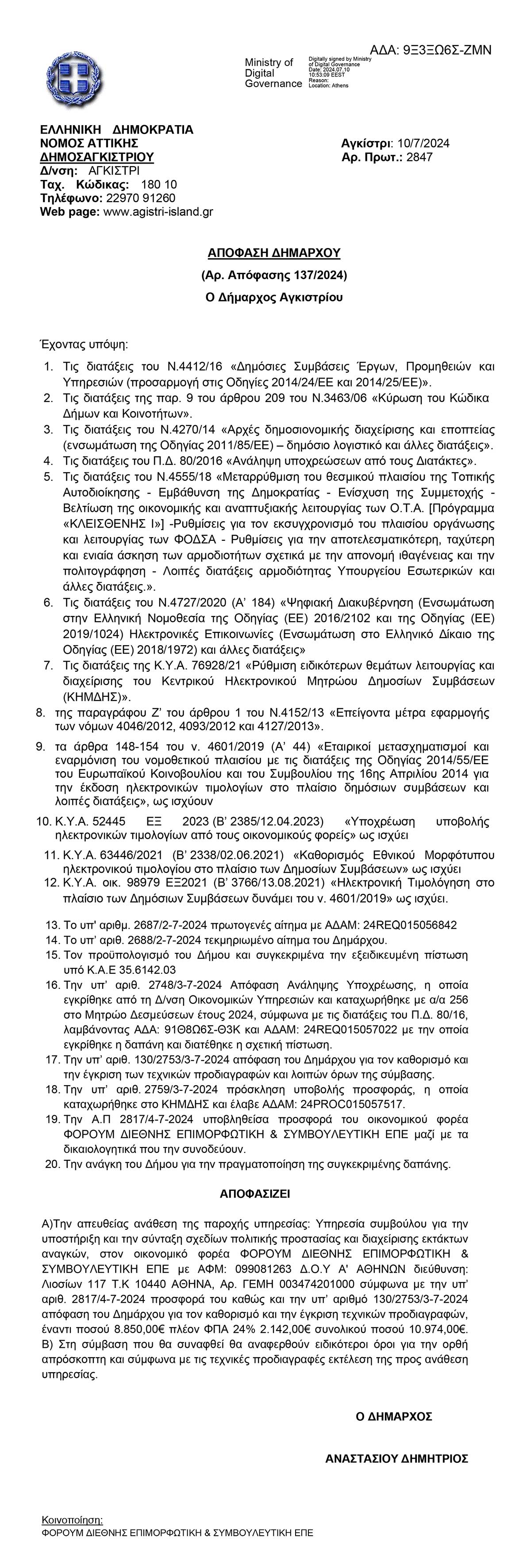 Μετακίνηση υπαλλήλου για διεκπεραίωση υποθέσεων του Δήμου στην ALPHA ΤΡΑΠΕΖΑ 10 Ιουλίου 2024 ΑΠΟΦΑΣΕΙΣ ΔΗΜΑΡΧΟΥ