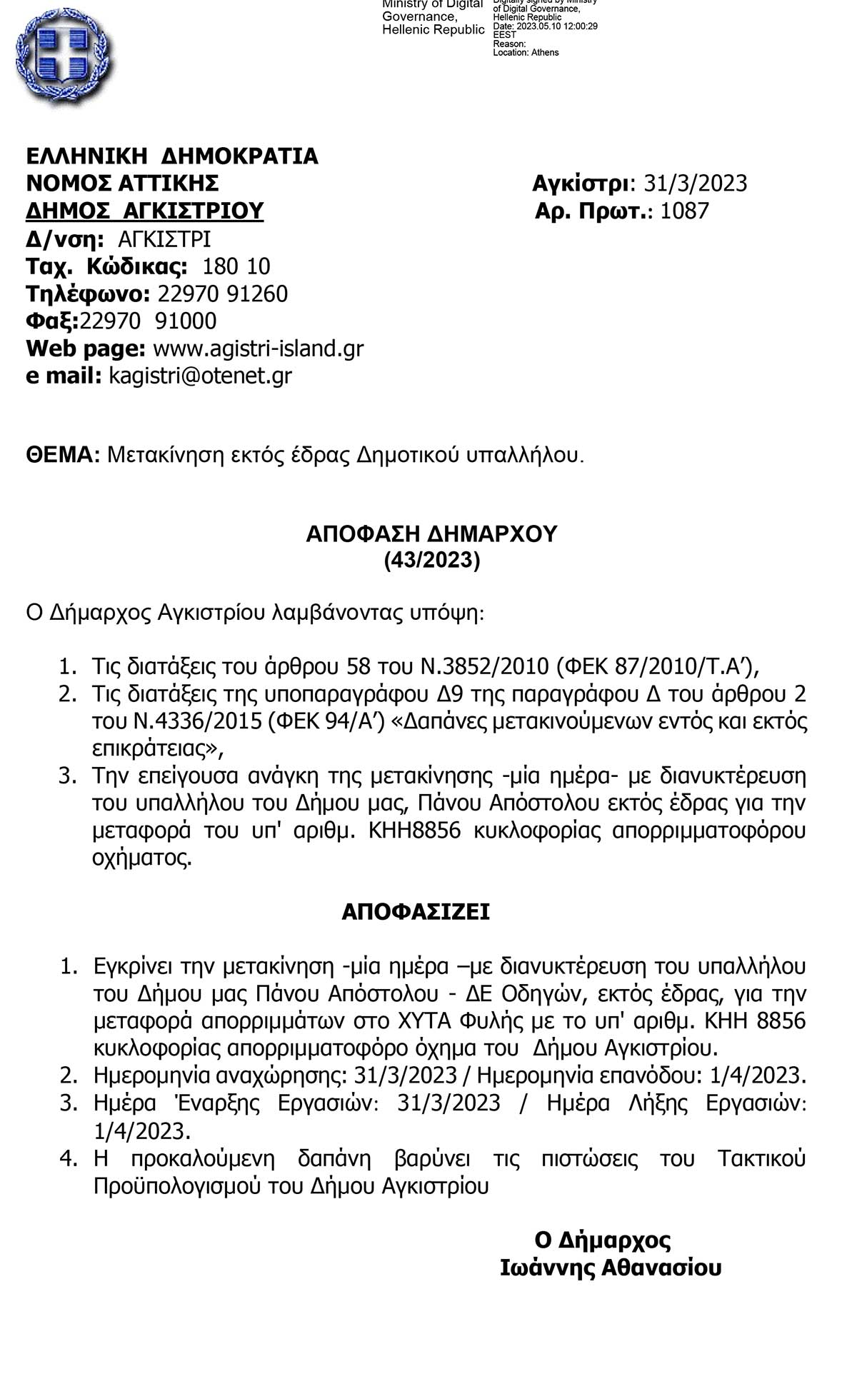 ΑΠΟΦΑΣΕΙΣ ΔΗΜΑΡΧΟΥ