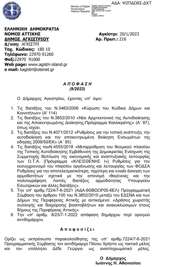 Ορισμός εκπροσώπων για παρακαλούθηση σύμβασης με τον ΕΔΣΝΑ
