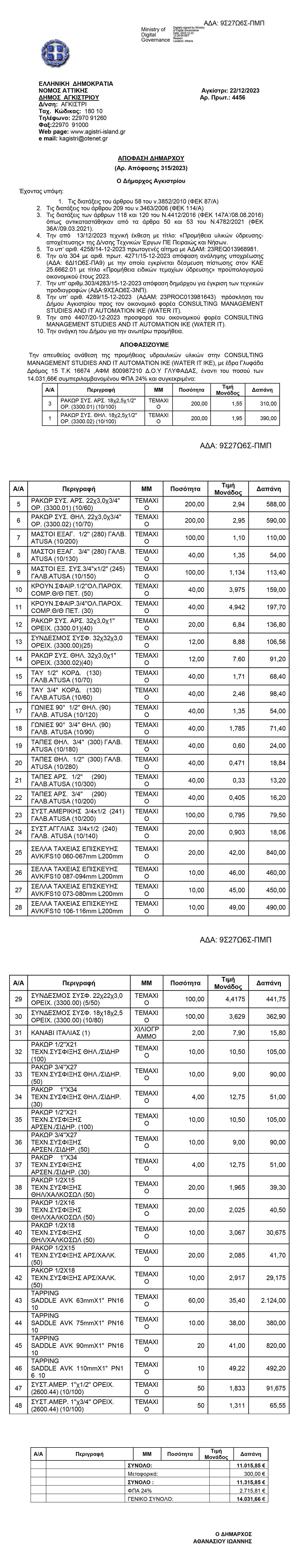 ΑΠΟΦΑΣΕΙΣ ΔΗΜΑΡΧΟΥ