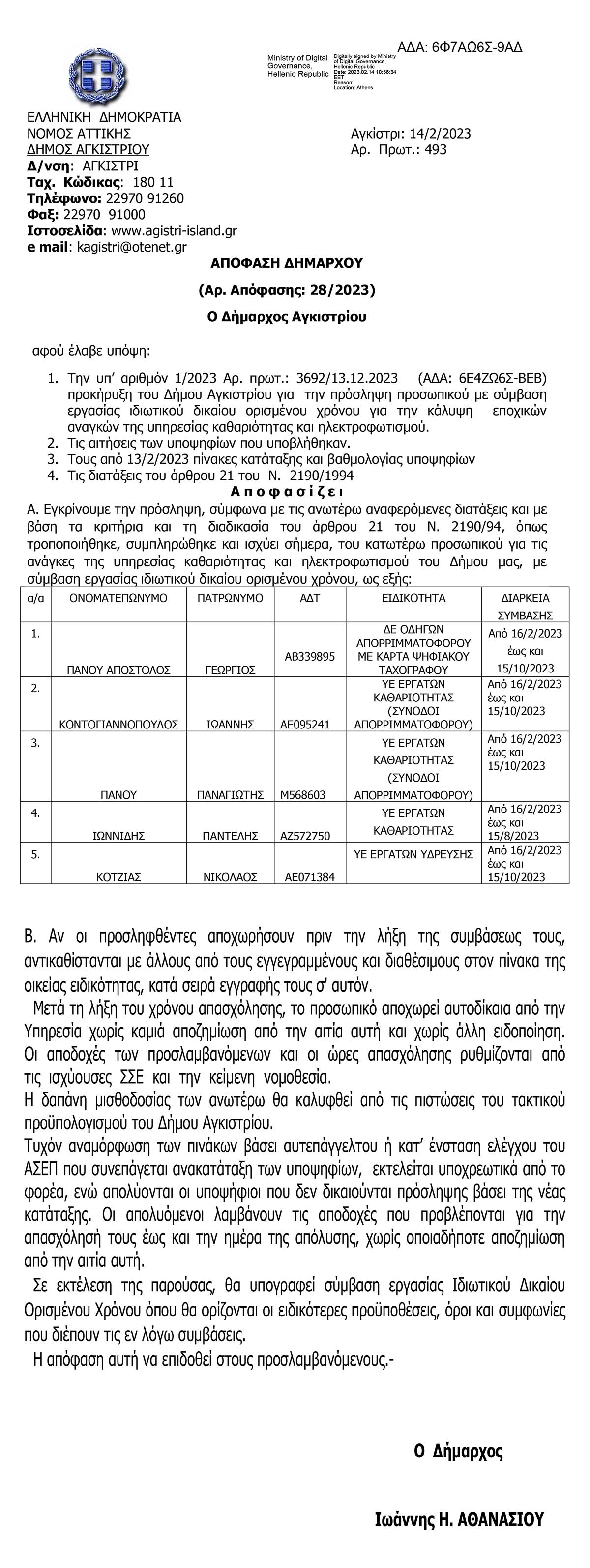ΑΠΟΦΑΣΕΙΣ ΔΗΜΑΡΧΟΥ
