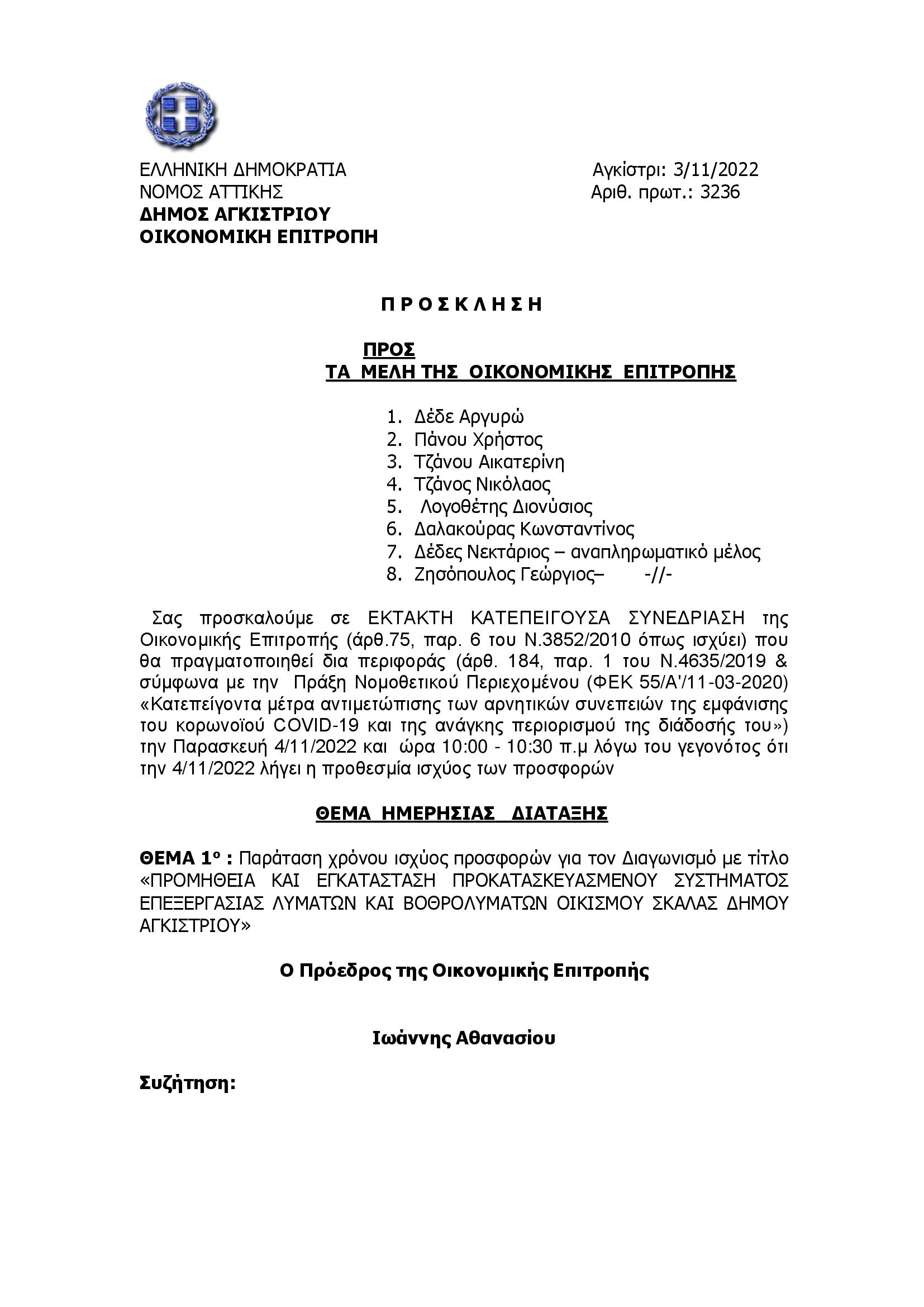19η Έκτακτη Συνεδρίαση, Παρασκευή 4 Νοεμβρίου 2022 4 Νοεμβρίου 2022 ΣΥΝΕΔΡΙΑΣΕΙΣ ΟΙΚΟΝΟΜΙΚΗΣ ΕΠΙΤΡΟΠΗΣ