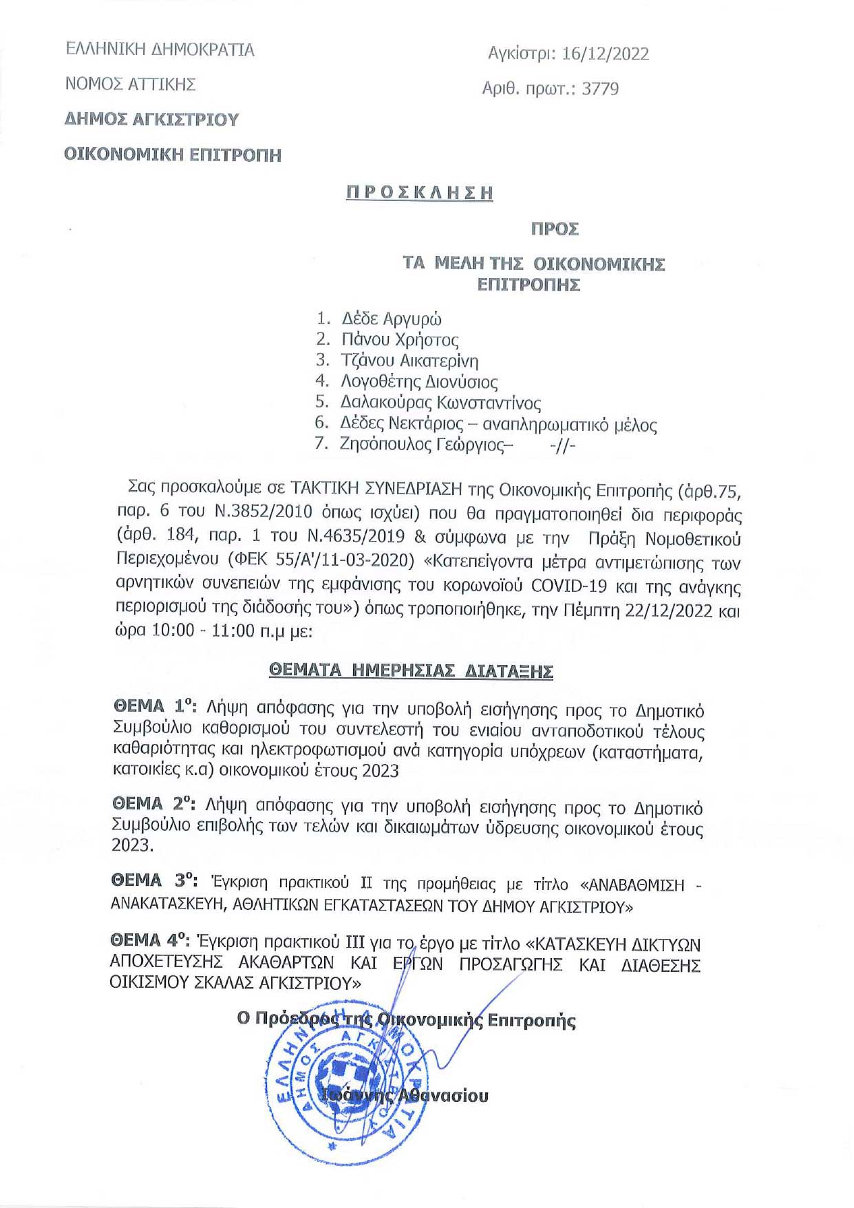 21η Τακτική Συνεδρίαση, Πέμπτη 22 Δεκεμβρίου 2022 21 Δεκεμβρίου 2022 ΣΥΝΕΔΡΙΑΣΕΙΣ ΟΙΚΟΝΟΜΙΚΗΣ ΕΠΙΤΡΟΠΗΣ