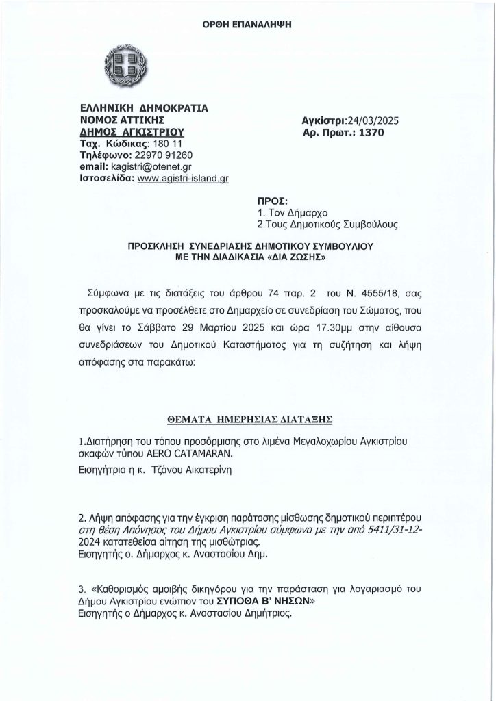 6η τακτική Συνεδρίαση του Δημοτικού Συμβουλίου, Σάββατο 29 Μαρτίου 2025 και ώρα 17.30 24 Μαρτίου 2025 ΠΡΟΣΚΛΗΣΕΙΣ ΔΗΜΟΤΙΚΟΥ ΣΥΜΒΟΥΛΙΟΥ